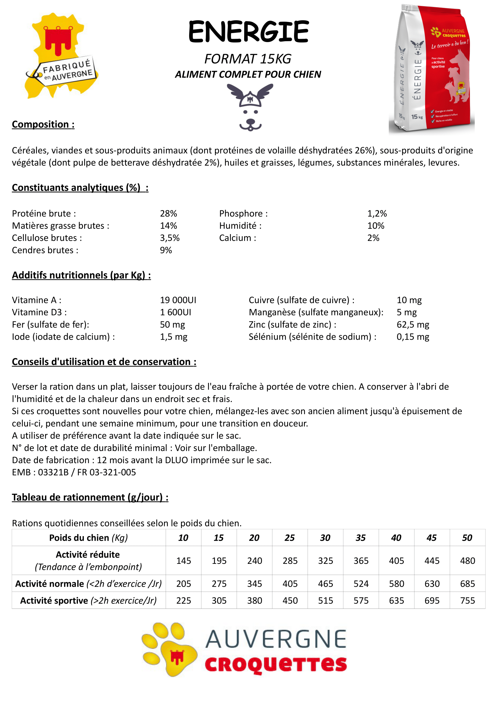 Energie : Cette formule est riche en volaille. Excellent pour jeune chien actif. Ces croquettes permettent de préserver la masse musculaire de votre chien tout en lui offrant une véritable source d’énergie.